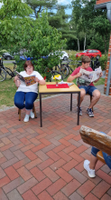 Laura Durmann (296 Gesamtpunkte) durfte sich dann aber dank 5 Punkten, die sie mehr beim Spieltag-Tippen erreicht hatte, als erste einen Preis aussuchen. Sie entschied sich für den vollgepackten Präsentkorb von der Eitzer Heimatbühne.