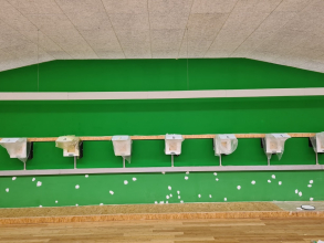Bereits im Juni 2020, während der Schießsportbetrieb aufgrund der damals geltenden Coronaregeln nicht durchgeführt werden konnte, nutzten die Mitglieder diese Gelegenheit, um den Eingangsbereich und die Schießhalle im Vereinsheim zu renovieren. Der komplette Flur wurde verspachtelt, geschliffen und angestrichen und anschließend mit einer Schutzlasur überzogen. Dazu kamen neue Beleuchtung an der Decke. Auch die Toilettenräume wurden im gleichen Zuge neu gestrichen.