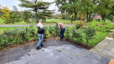 Im Außenbereich wurde derweil vor der großen Fensterfront eine zweite Terrasse gepflastert.