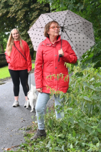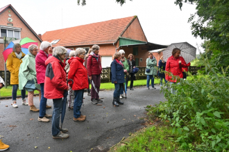 Nach dem gemeinsamen Kaffeetrinken ging es dann auf die Suche nach Wildkräutern. Da das Wetter regnerisch war, wurde aus der Wanderung eher ein Spaziergang rund um die Eitzer Tonkuhle. Was es aber auf dem knapp 1,5 km langen Fußweg am Wegesrand alles an Kräutern zu sehen gab, überraschte die Teilnehmerinnen: Brennessel, Holunder, Nerkenwurz, Giersch, Gänsefingerkraut, Eberesche, Löwenzahn, Spitzwegerich, Beifuss, Gundermann, Mädesüss, Taubnessel und Schafgarbe wurden von Susanne Zweibrück hinsichtlich ihrer Inhaltsstoffe, Wirkweisen und Verwendungsmöglichkeiten sachkundig vorgestellt. Sie hat wirklich die Gabe, Menschen für Wildkräuter zu begeistern und das fast vergessene Wissen über Heilpflanzen weiterzugeben. „Ich werde jetzt mit offeneren Augen durch Eitze spazieren, da ich weiß, was es hier so alles an Kräutern gibt und was sie bewirken können,“ meinte eine der Teilnehmerinnen.