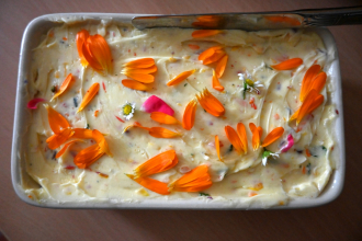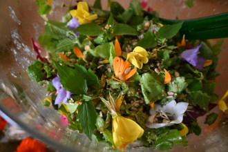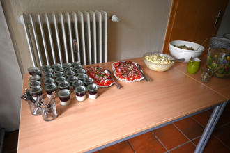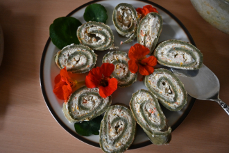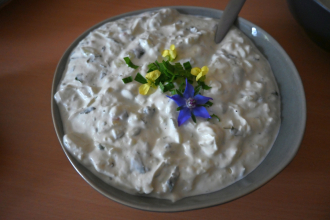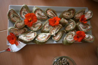 Zum Abschluss konnte man das, was man auf dem Spaziergang über die Verwendungsmöglichkeiten der Wildkräuter in der Küche erfahren hatte, praktisch ausprobieren: im Dorfgemeinschaftshaus gab es ein Wild-Kräuterbüffett mit Giersch-Limonade, grünen Wildkräuter-Pfannkuchen, Wildkräuter-Brötchen, Sommerblumen-Butter, Wiesen-Tzaziki, Wildkräuter-Salt und Mädesüß-Creme. Die Eitzerinnen waren begeistert davon, was man mit Wildkräutern so alles zubereiten kann und diese werden wohl Einzug in die ein oder andere Eitzer Küche halten, denn Susanne Zweibrück verteilte zum Schluss noch an alle Teilnehmerinnen ein kleines Heftchen mit Informationen zu den Wildkräutern und den Rezepten zum Nachkochen.