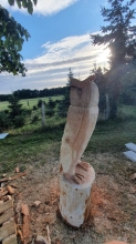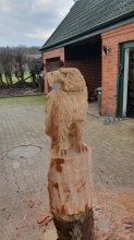 Neben Pilzen und Eulen sind auch schon zwei Adler und ein Pferdekopf aus (meistens) Lärchenholz angefertigt worden.