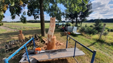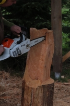Um seine Figuren noch präziser und detailierter auszuarbeiten, hat er vor kurzem in eine besondere Kettensäge mit speziellem "Carving-Schwert" investiert. Das bietet den Vorteil, noch exaktere und filigranere Schnitte sowie Verzierungen in die Stämme zu sägen.