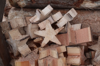 In diesem Jahr hat er zudem Sterne, passend zur Weihnachtszeit, aus Holz geschnitten. Diese, sowie weitere Pilze und Eulen werden ab dem 7. Dezember bei Linda Wolfgramm im Rahmen des Weihnachtsbaumverkaufs präsentiert und zum Kauf angeboten.