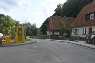 Gestärkt mit traditionellen Gerichten wie Matjes mit Bratkartoffeln ging es dann zur „Königberger Straße“. In diesem bundesweit einmaligen Projekt wird das Alltagsleben im ländlichen Raum in den ersten Nachkriegsjahrzehnten erlebbar gemacht. Hier sind fünf Häuser aus den 1950er bis 1970er Jahre wieder errichtet worden – einschließlich zeittypischer (Nutz-) Gärten, Spielplatz, Straßenlaternen, Litfaßsäule und Telefonzelle. Die Ausstellungen in den Gebäuden zeigen Wohnsituationen von Familien und übliche Arbeitsplätze dieser Zeit.