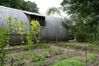 Bei einer Führung konnte man zunächst Einiges über die Wohnsituation in und nach der Kriegszeit erfahren, denn sie begann in einer sog. Ley-Hütte, einem „seriell“ hergestellten Behelfsheim, in dem von August 1943 bis Frühjahr 1945 insbesondere Evakuierte und Ausgebombte aus deutschen Städten untergebracht wurden. Gleich daneben konnte eine Nissenhütte besichtigt werden, ein halbrunder, länglicher Bau aus einfachen Fertigteilen aus Wellblech mit einer Grundfläche von 40 Quadratmetern, der nach dem Erfinder kurzerhand „Nissenhütte“ genannt wurde. Diese bauten die Alliierten nach dem Zweiten Weltkrieg vielfach als Behelfsheim für Flüchtlinge und Luftkriegsopfer. In der Regel war eine Nissenhütte mit bis zu zehn Menschen belegt, es waren zwei Familien oder Einzelpersonen. In beiden Gebäuden zeigten Ausstellungen, wie das Leben in solchen Behelfsheimen war.