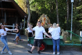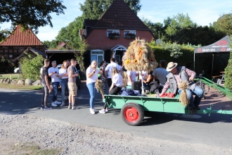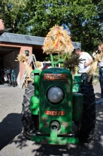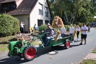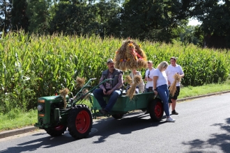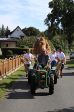 Am Erntefest-Samstag wurde die Erntekrone dann auf einem Anhänger und einem Traktor durch die Ortschaft gefahren.