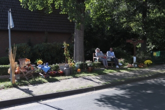 Dem Aufruf, die Gärten zu schmücken und an die Straße zu kommen, wenn die bunte Erntekrone vorbei fährt, haben viele Einwohner gefolgt. Über 15 Gärten haben zudem am Schmück-Wettbewerb teilgenommen, aber viele weitere Bewohner haben ein paar Kleinigkeiten in den Vorgärten oder den Höfen dekoriert.