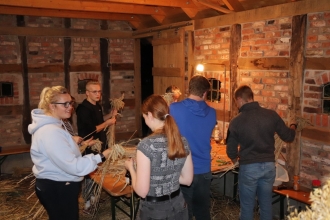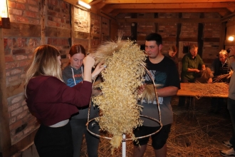 Gebunden wurde dafür eine Erntekrone. Ohne viel Publikum, sondern handgefertigt von den Eitzer Erntepaaren und ein paar wenigen Helfern.
