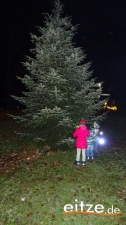 Am Eitzer Schützenhaus wurde der rund 5 Meter hohe Baum bereits eine Woche zuvor aufgestellt und mit 200 Meter Lichterketten geschmückt.