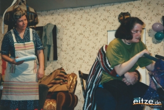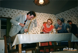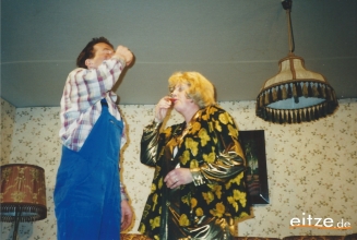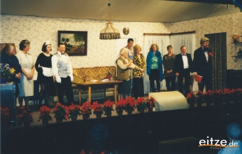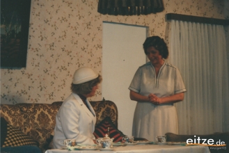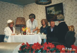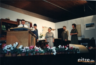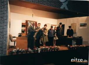 Schon vor 25 Jahren war das Stück ein ausgesprochener Theatererfolg und manche Rolle werden die älteren unter unseren Besuchern mit alten Bekannten wie vor 25 Jahren besetzt finden, wie z.B. Gerda Bohnet als schlagfertige Oma oder Harald Brockmann als Dorfpolizist. Auch Irmgard Dirks geb. Panning spielte damals mit, wenn auch in einer anderen Rolle.