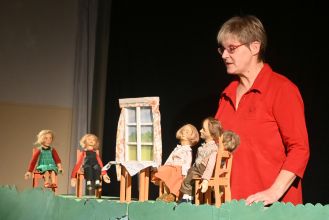 Auf der liebevoll gestalteten Puppenbühne und in wechselnden Bühnenbildern erweckte Birgit Neemann die wunderschönen Puppen und Requisiten zum Leben. Vom ersten Moment an konnten so alle Anteil nehmen an Lottas aufregenden Erlebnissen. Die kleine Lotta lebt mit ihren größeren Geschwistern Mia-Maria und Jonas, ihren Eltern und ihrer Nachbarin Tante Berg in der Krachmacherstraße. Das klingt idyllisch, aber Lotta hat ganz schön viel Probleme. Ihre Geschwister fahren Fahrrad, während Lotta nur ein Dreirad hat, und Jonas behauptet sogar, Lottas geliebter Teddy sei in Wirklichkeit ein Schwein! Als ihre Mama darauf besteht, dass sie einen kratzigen Pulli anzieht, reicht es Lotta endgültig. Sie zieht um. Auf dem Dachboden von Tante Berg richtet sich Lotta wohnlich ein. Aber in der Nacht ist es da auf einmal doch ganz schön unheimlich!