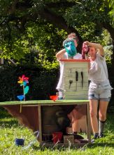 Das Sommerstück im Kindertheater Eitze konnte bei bestem Wetter wie geplant OpenAir im Garten des DGH stattfinden. Der Verein Tintenklecks hatte hierzu das Kollektiv Punkt-Punkt-Punkt gebucht. Es spielten Marie-Louise Hoppenheit und Konrad Mohring.