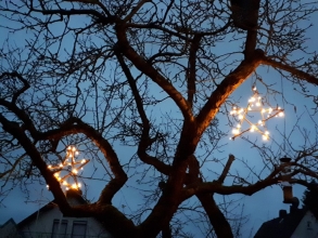 Mit selbstgemachten Sternen aus Ästen und Lichterketten möchten wir viele Häuser in Eitze im Schein des Sternes sehen.