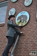 Der 2. Ritter Sascha Thies brachte unterhaltsam die Königscheibe ans Haus an, bevor die Schützen – vorbei an liebevoll geschmückten Gärten, zum Schützenhaus zurückmarschierten.