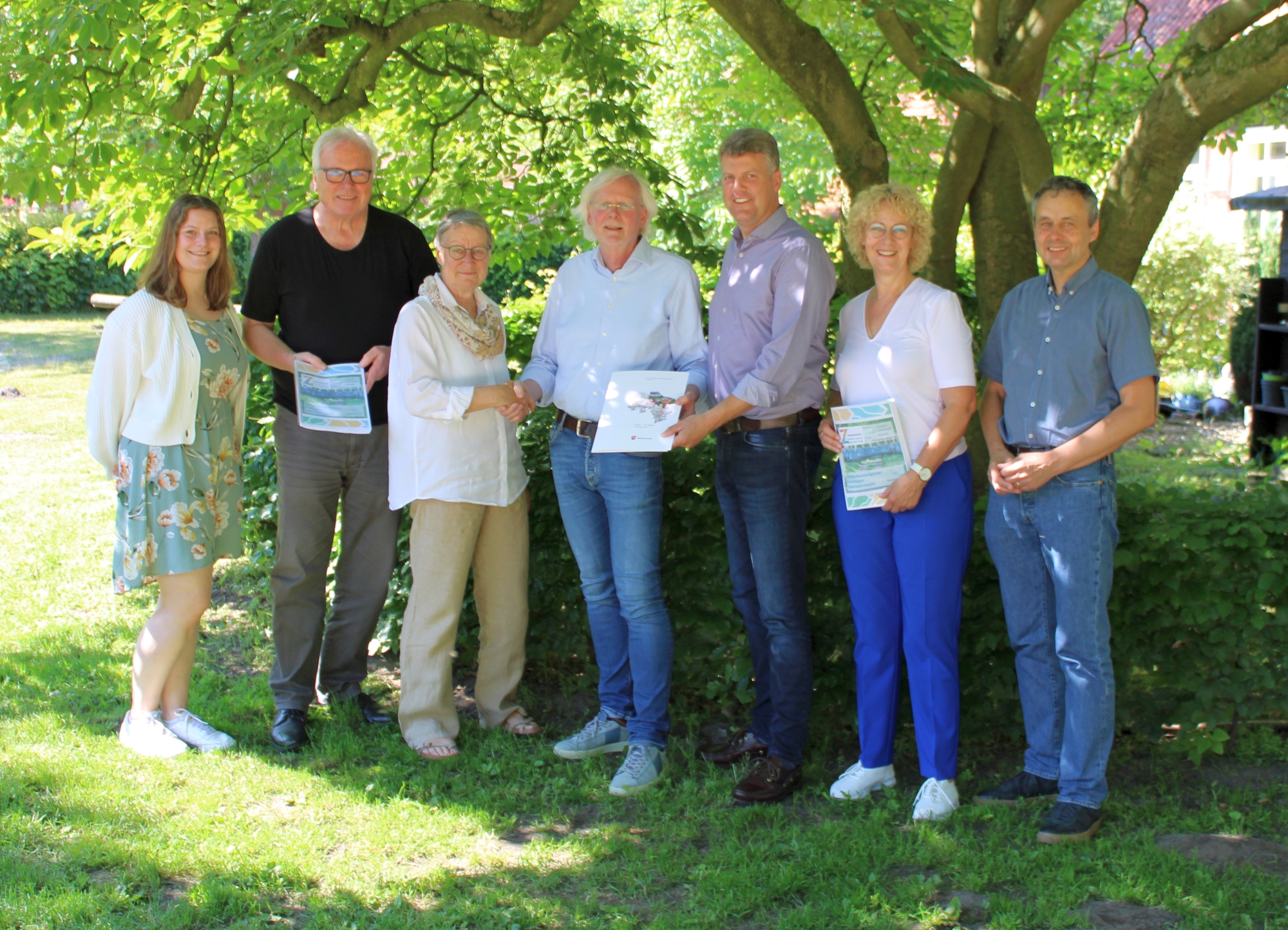 Auf dem Foto sind zu sehen (von links): Naima Gödecke (KoRiS), Dr. Harald Meyer (Stadtlandschaft), Anja König, Siegfried Dierken (Amt für regionale Landesentwicklung Verden), Arne Jacobs, Petra Lindhorst-Köster, Cort-Brün Voige (Amt für regionale Landesentwicklung Verden)